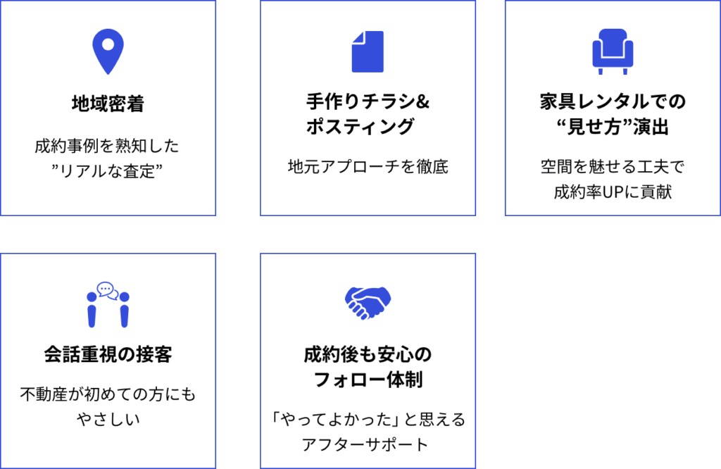 洛東エステートでは、チラシ手配り・家具レンタル演出など、「売るための演出」に本気で取り組むため、「ちゃんと売り切る」ことを重視します。
